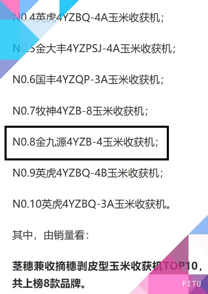 ? ? 據(jù)權(quán)威機(jī)構(gòu)統(tǒng)計(jì),2020年度中國莖穗兼收機(jī)銷量排行榜“金九源”榜上有名